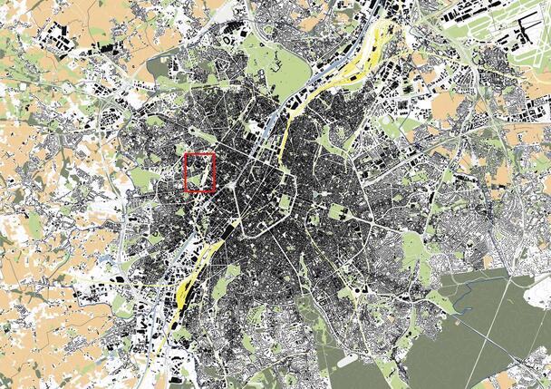 Together with Team Bouwmeester Maître Architecte (BMA) from Brussels, we have agreed on a project with MA students from the SoAB in Molenbeek-Saint-Jean: an interface of very different uses, social conditions, urban design scales and typological classifications such as epochs. The focus is on the development of the LionCity, a former inner-city industrial site and an adjacent prefabricated concrete slab housing area. Our topics are the handling and preservation of large housing estate structures, combining work and living, the integration of a cultural institution and the spatial relationship to an important city park.
