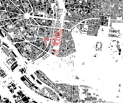 La remise en question de la ville classique a fonctionné aussi longtemps que le « théoriquement déconstruit » était disponible en abondance. Tout ce qui était nouveau n’était bien que dans la différence avec ce qui était déjà et aussi longtemps que cela le restait. L’histoire n’est source de recul qu’aussi longtemps qu’elle est reconnaissable comme point de départ. Paris est, en apparence, une intarissable source de l’histoire de la ville. De combien des motifs de communauté humaine comme havre d’existence civique cette ville a-t-elle été l’initiatrice ? Combien de fois cette métropole a-t-elle été prise comme référence pour démontrer la validité d’images utopiques de ville-machine ? Plus encore, c’est en référence à la puissance d’urbanité de cette ville que l’on invoque le motif d’impératif de destruction pour une catharsis de la société par l’architecture.