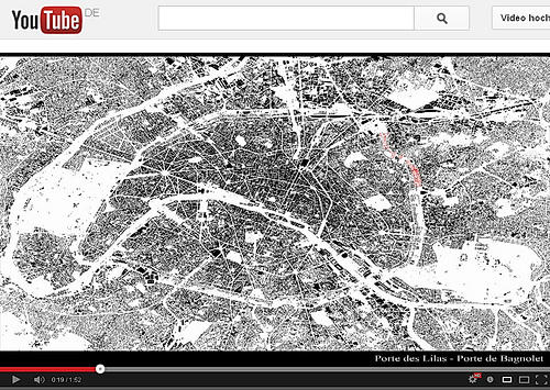 Über den ‚Boulevard Périphérique‘ definiert sich Innen und Außen für Paris und er gibt der Stadt ihre emblematische Form. Wie zwei unterschiedliche Denkräume entlang einer Demarkationslinie stammt die Ringautobahn in ihrer heutigen Form auch aus den 1960ern. Das Innere, Raum der großen und weitreichenden Gedanken den Visionen, ist in Wirklichkeit aber recht klein, zu Fuß in weniger als drei Stunden zu durchqueren, der Kosmos von Walter Benjamins Passagenwerk oder in gleicher Zeit mit dem Rad auf der Innenseite zu umrunden. Dagegen das Außen unendlich, war bisher mehr für die kleinen und kurzen Gedanken zuständig, schnelle Entscheidungen ‚extra muros‘ abgelegt zwischen Resten der abgetrennten Banlieue. Hier herrscht das Grenzenlose, die Stadt zergliedert in Einheiten der Riesen und der Zwerge, autistisch nebeneinander getrennt, nicht in einem gemeinsamen Raum eingebunden, sondern über die Fäden einer Verkehrssystematik im „flowchart-traffic“* verknüpft.