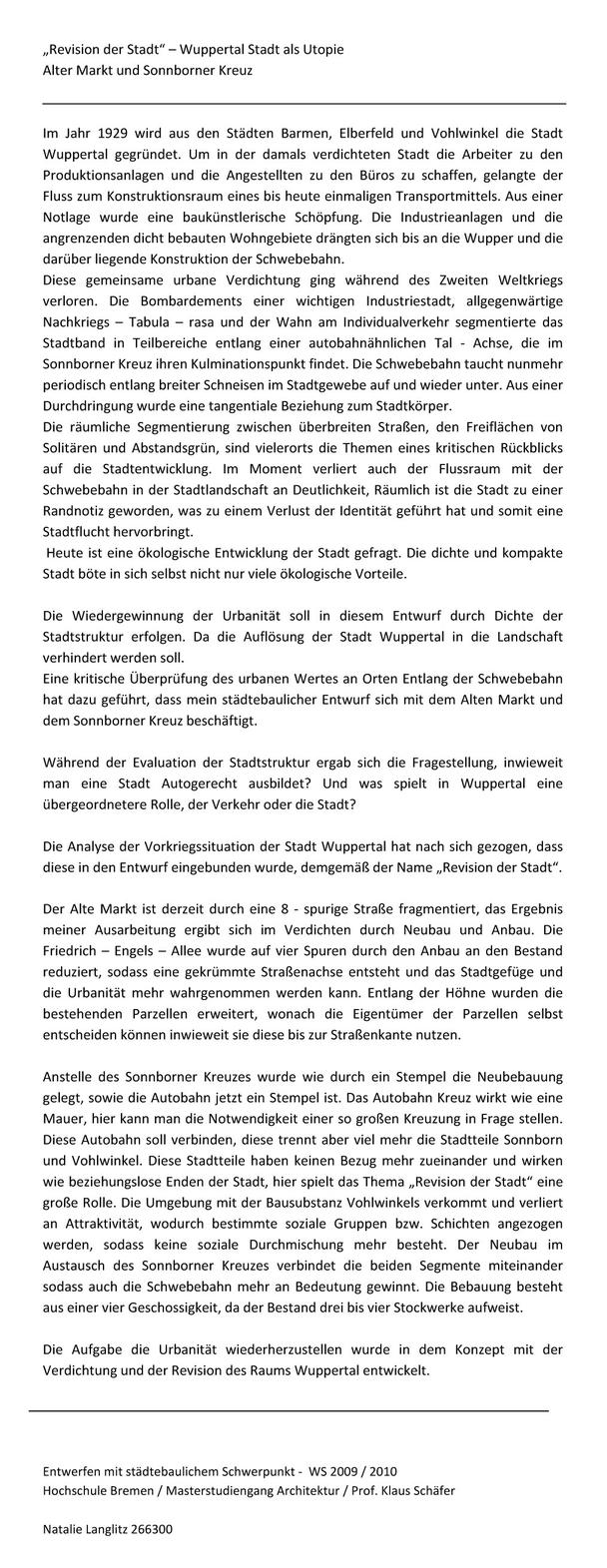 Entwurf - Stadt als Utopie - Wuppertal