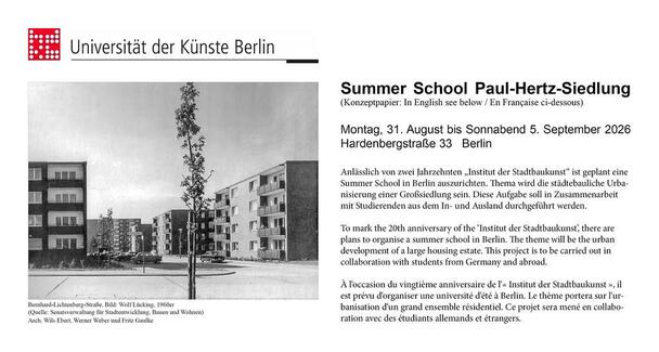 Summer School from 31 August to 5 September 2026 at the UdK Berlin