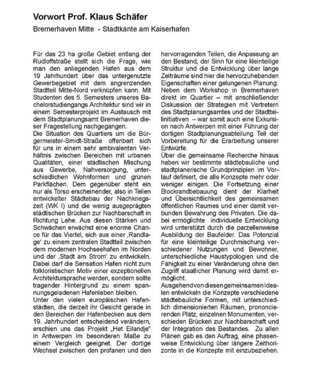 Prof. Klaus Schäfer, Lehstuhl Städtebau und Entwerfe, Hochschule Bremen, Februar 2014