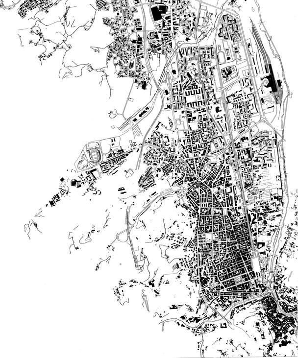 Mit den Studenten der UNICAL (Prof. Paola Canavo, Prof. Gabrio Celani) und Studenten aus Bremen (3. u. 5. Studiensemester) wurden zunächst regionale Fragestellungen erarbeitet und Szenarien diskutiert. Grundsätzlich war zu Bestimmen, ob man dem analysierten Bestand und seiner Entwicklung zuarbeitet oder entgegenwirken möchte. Die Maßstabsebene (1:5.000 bis 1:500), auf der vorgegangen werden könnte, war ebenfall so diskussionswürdig, wie der Zeithorizont (10 bis 50 Jahre) für geplante Maßnahmen. Wo liegen die entscheidenden Konversionsflächen? Wie greift man ein, punktuell oder in großen Bereichen? Entwickelt man die Vorstadt durch Rückbau? Wo sind die Potentiale für eine erfolgreiche Innenentwicklung von Cosenza? Was sind die hierfür adäquaten räumlichen Strukturen? Welche Bautypologien sind geeignet für eine Transformation, Fortsetzung oder Verdichtung?
