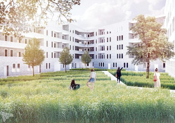 In einer vertiefenden Betrachtung werden Grundrisse für das Erd- sowie für ein Regelgeschoss entwickelt. Für die meisten Gebäude sind im Erdgeschoss Gewerbeflächen geplant, die ebenfalls Zugang zum Innenhof haben. An einigen Stellen jedoch wird barrierefreies Wohnen im Erdgeschoss ermöglicht, indem die Gebäude durch einen Vorgarten von drei Metern von dem Gehweg entfernt sind. Somit wird die Privatsphäre und Distanz zum öffentlichen Leben gewährleistet.
